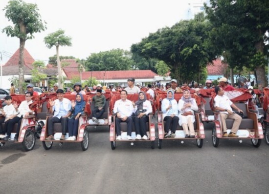 Channel9.id – Jakarta. Sebanyak 200 becak listrik berwarna merah berjajar di Pendopo Kabupaten Bojonegoro, Jawa Timur, Rabu (11/3/2026). Becak-becak tersebut merupakan bantuan dari Presiden Prabowo Subianto bagi para penarik becak lansia di daerah tersebut.