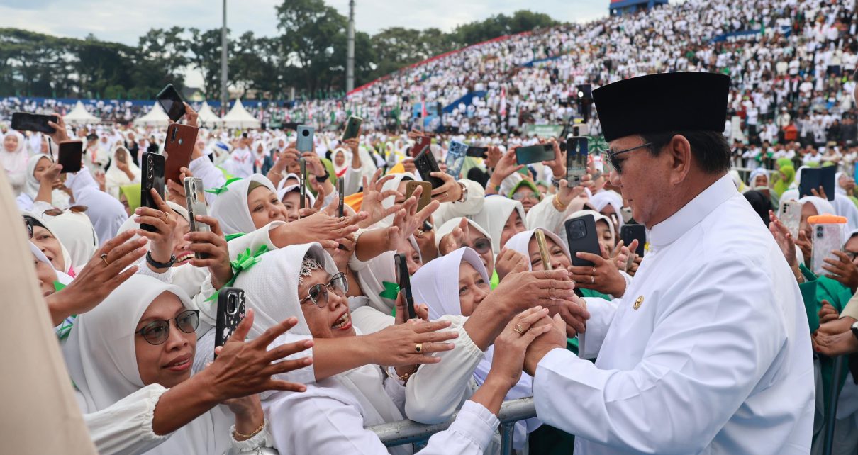 Sambut Prabowo di Stadion Gajayana Malang, Ratusan Ribu Nahdliyin Berdiri Bersholawat