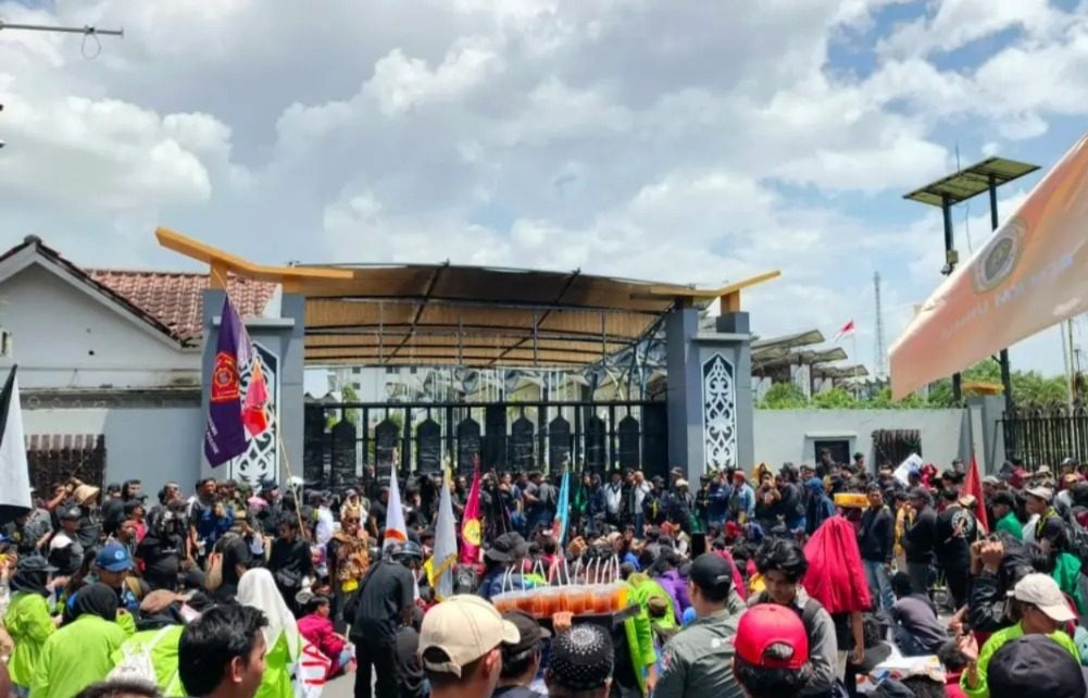 Channel9.id – Samarinda. Ribuan massa dari berbagai elemen masyarakat melakukan aksi demonstrasi ’Rakyat Kaltim 21 April’ di depan Kantor DPRD Kalimantan Timur (Kaltim), Samarinda, Selasa (21/4/2026). Dalam aksi ini, massa melumuri pagar depan Kantor DPRD Kaltim dengan oli.