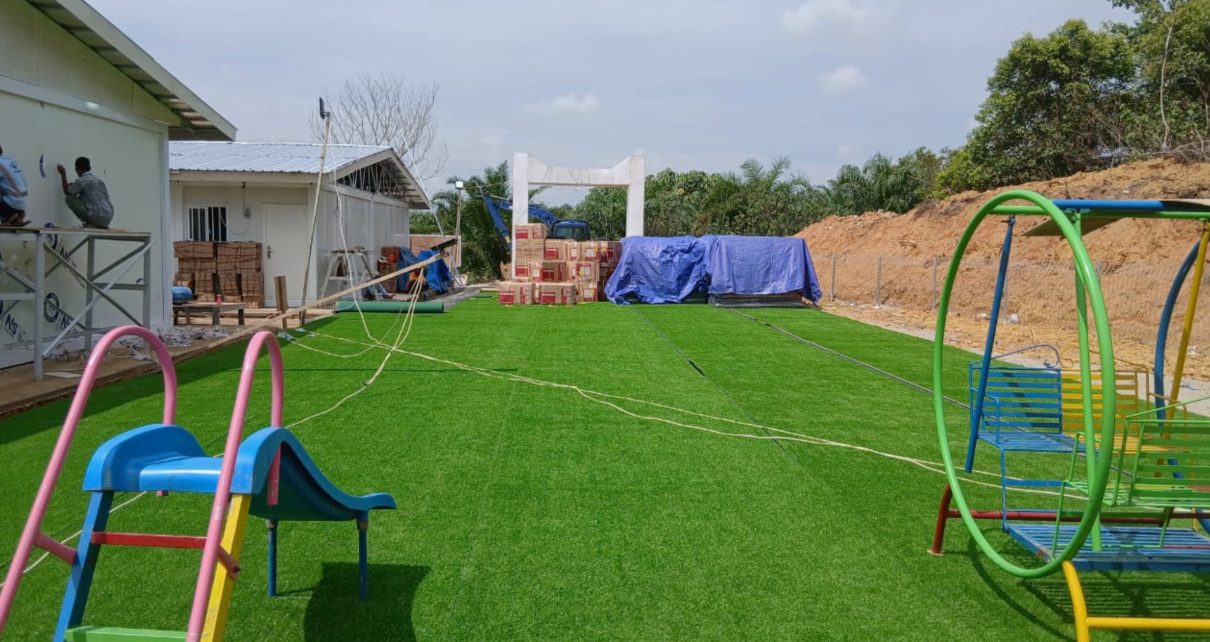 Di Subulussalam, Aceh, huntara juga sudah rapi. Di sini bahkan disiapkan taman bermain anak yang dialasi dengan rumput sintetis. Di lokasi tampak sudah ada unit ayunan, jungkat-jungkit, dan sejumlah media permainan anak lain.