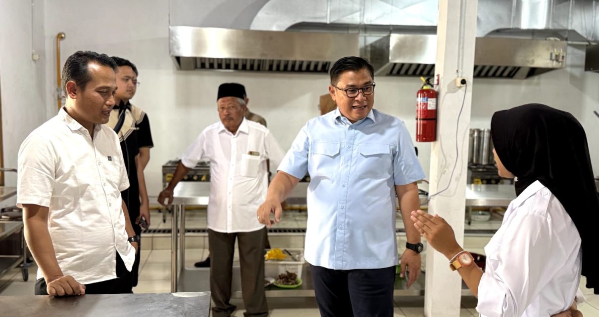 Dalam kunjungan tersebut, Danang Wicaksana meninjau langsung aktivitas dapur, mengecek fasilitas kantor SPPG.