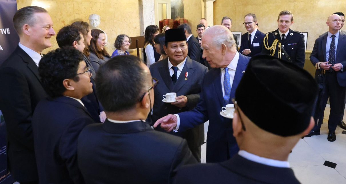 Usai pemaparan, Prabowo dan Raja Charles berinteraksi dengan pengusaha serta filantropi lingkungan yang tergabung dalam UK–Indonesia Peusangan Elephant Conservation Initiative. Keduanya tampak berjalan beriringan dan berbincang dengan para undangan sambil menikmati teh.