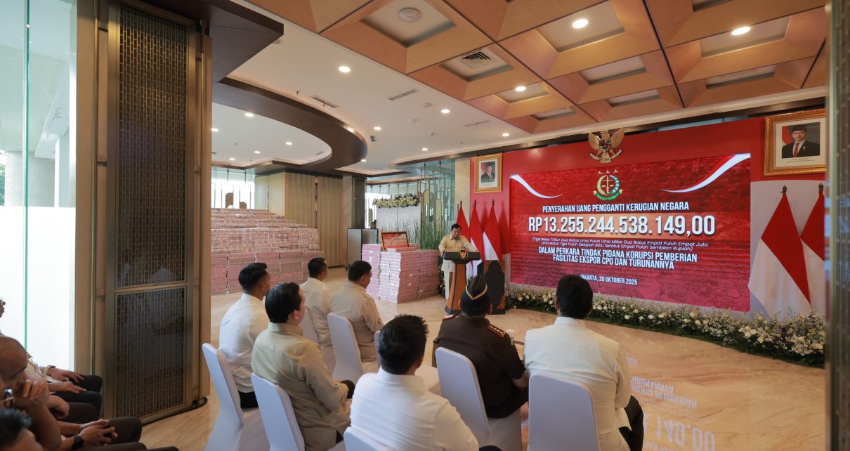 Hal tersebut disampaikan Prabowo dalam acara penyerahan uang sitaan senilai Rp13,2 triliun oleh Kejaksaan Agung di kasus korupsi persetujuan ekspor Crude Palm Oil (CPO) minyak kelapa sawit pada Senin (20/10).