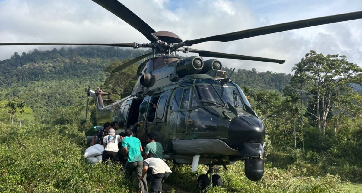 Channel9.id – Aceh. TNI Angkatan Udara kembali mengerahkan dua helikopter untuk mendistribusikan bahan pangan ke wilayah terdampak banjir bandang dan longsor di Aceh pada Sabtu (28/12/2025). Logistik disalurkan ke tujuh desa yang berada di tiga kabupaten di provinsi tersebut.